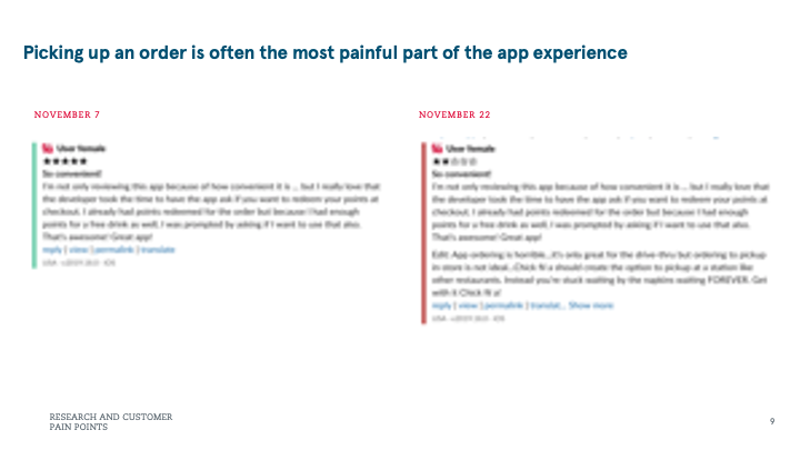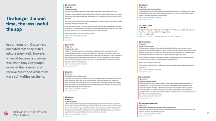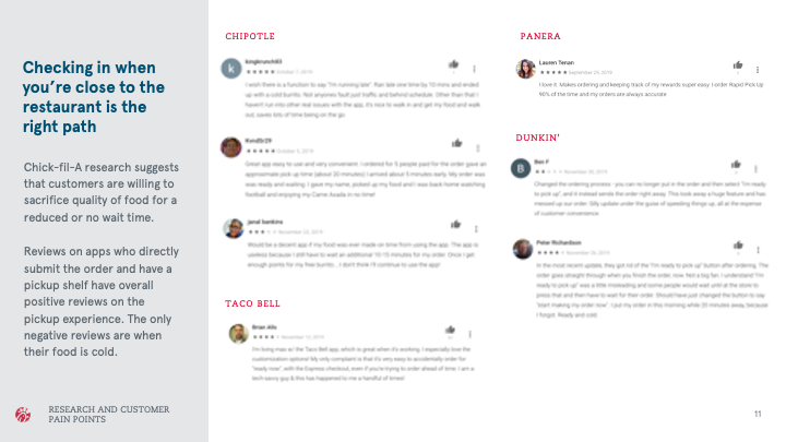 I also conducted research for the Chick-fil-A app and other apps using the reviews on the Apple Store and Google Play, and it looked like no restaurant was doing a very good job when it came to the delivery portion of the experience.