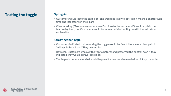 However, when testers saw screens with plain language and a more visible toggle, they were confident and sure. All of them said they would be likely to turn it on.