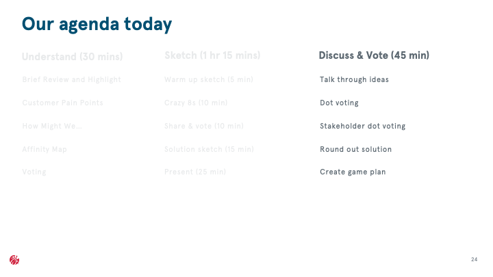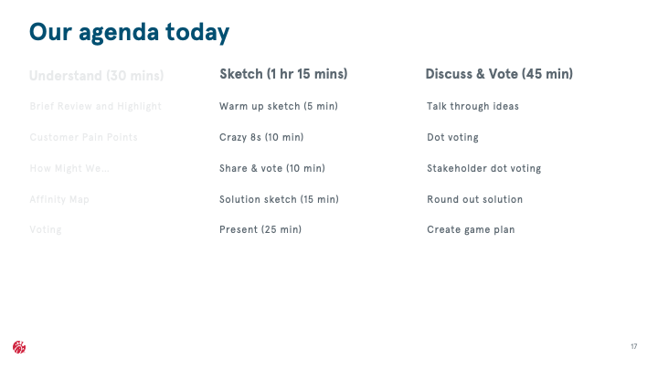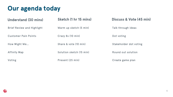 I led a 2 ½ hour design workshop which included the entire scrum team of 8 people (excluding myself) and the design director responsible for all of Chick-fil-A’s digital customer experience.